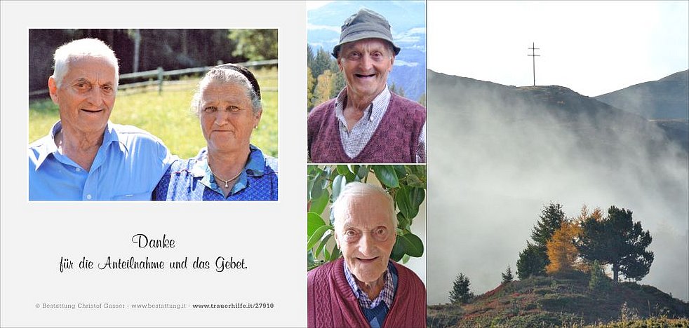 Ein herzliches Vergelt’s Gott gilt dem Hausarzt Herrn Dr. Johann Hainz sowie dem gesamten Personal vom 2. Wohnbereich des Wohn- und Pflegeheimes Bruneck.