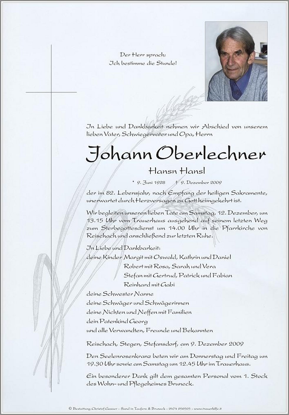 Wir begleiten unseren lieben Tate am Samstag, 12. Dezember, um 13.15 Uhr vom Trauerhaus ausgehend auf seinem letzten Weg zum Sterbegottesdienst um 14.00 Uhr in die Pfarrkirche von Reischach und anschließend zur letzten Ruhe.