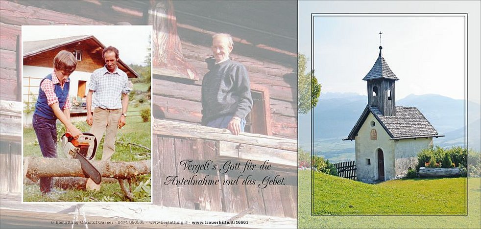 Vergelt’s Gott allen, die an den Seelenrosenkränzen und an der Beerdigung von unserem Tate teilnehmen.