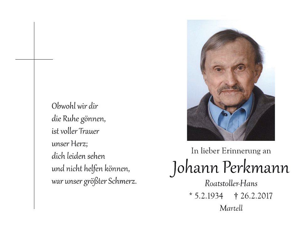 Am Aschermittwoch, 1. März, um 14 Uhr feiern wir den Begräbnisgottesdienst mit anschließender Verabschiedung in der Pfarrkirche von Martell.