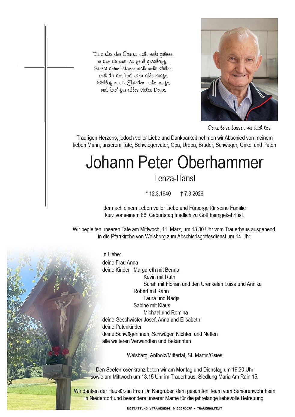 im Namen des Verwaltungsrates und der Mitarbeiter der Elektrowerkgenossenschaft Welsberg spreche ich Euch unser aufrichtiges Beileid zum Ableben Eures lieben Tate und Opa's aus.