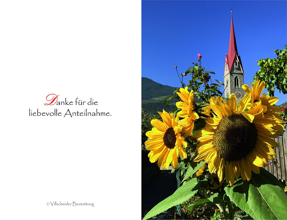 Anstelle von Blumen möge man für die Pfarrkirche von Sarns spenden.