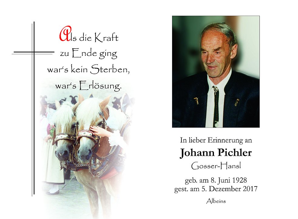 Wir begleiten unseren lieben Onkel Hansl am Donnerstag,