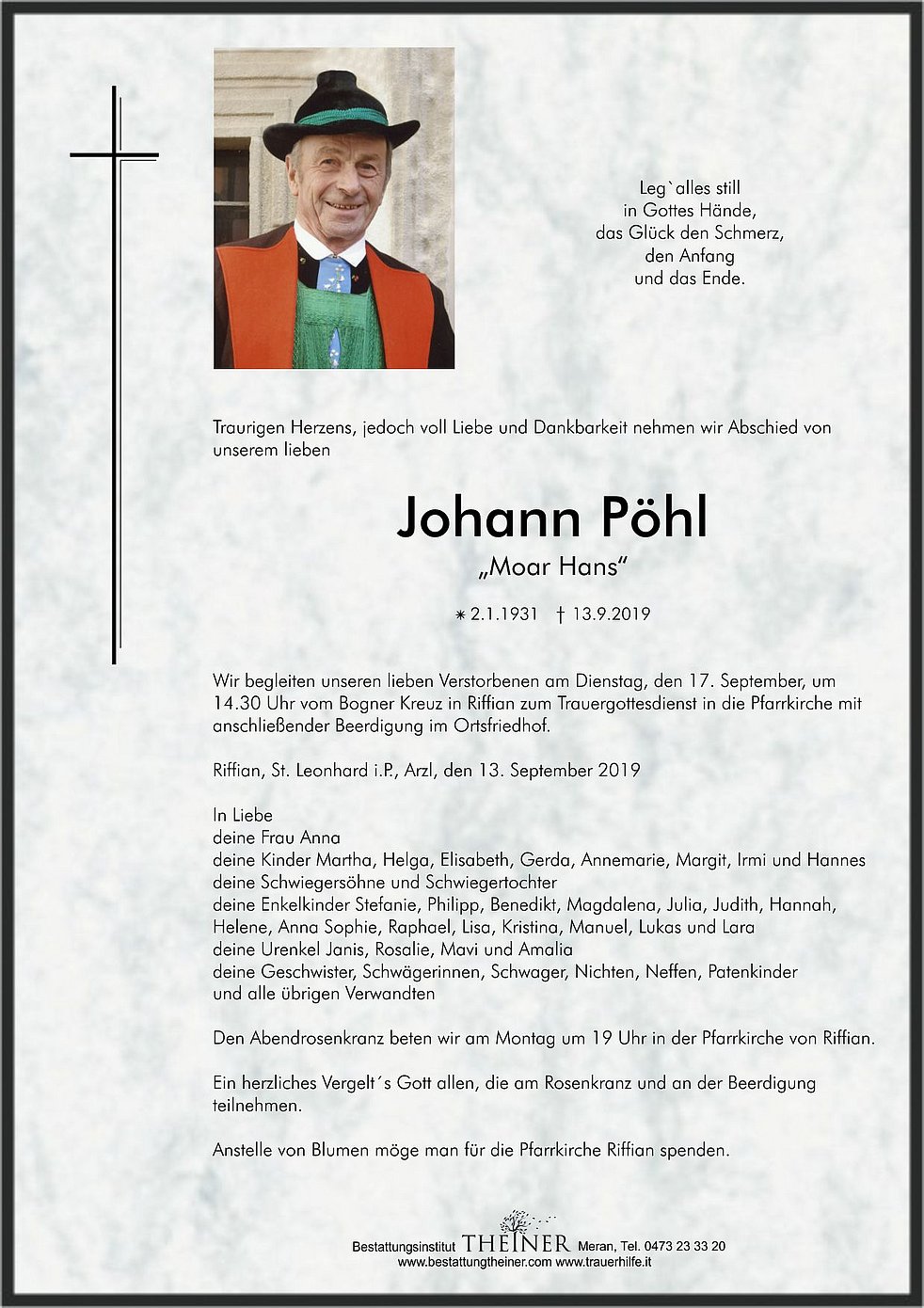 Wir begleiten unseren lieben Verstorbenen am Dienstag, den 17. September, um 14.30 Uhr vom Bogner Kreuz in Riffian zum Trauergottesdienst in die Pfarrkirche mit anschließender Beerdigung im Ortsfriedhof.