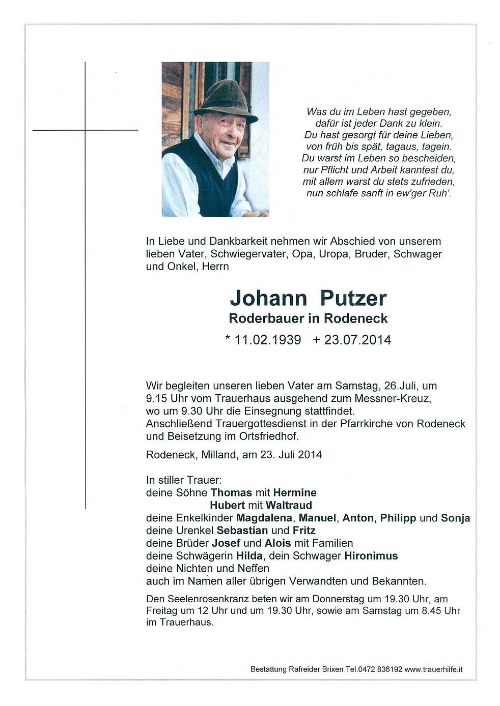 Wir begleiten unseren lieben Vater am Samstag, 26.Juli, um 9.15 Uhr vom Trauerhaus ausgehend zum Messner-Kreuz, wo um 9.30 Uhr die Einsegnung stattfindet.