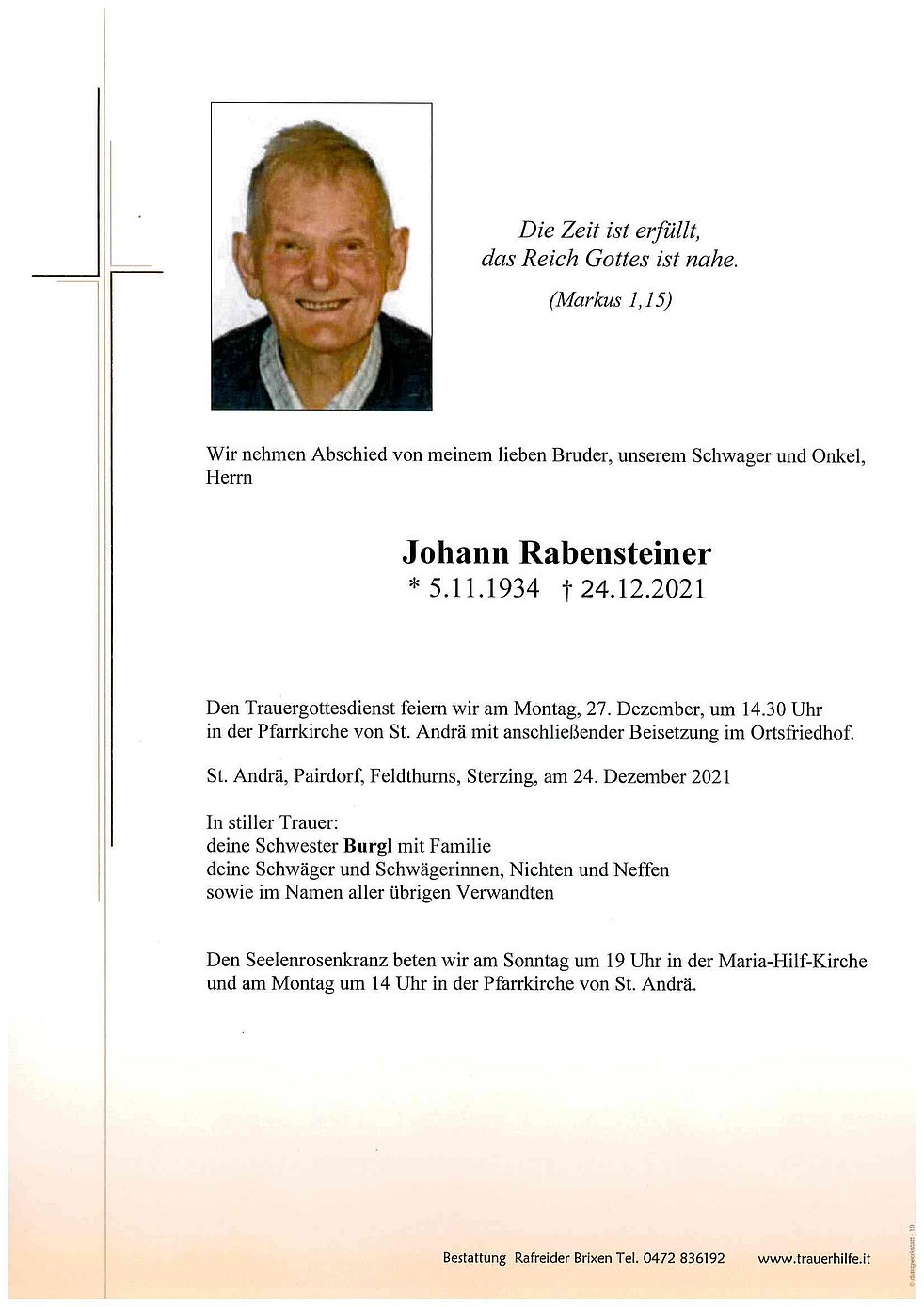 Den Trauergottesdienst feiern wir am Montag, 27. Dezember, um 14.30 Uhr in der Pfarrkirche von St. Andrä mit anschließender Beisetzung im Ortsfriedhof.