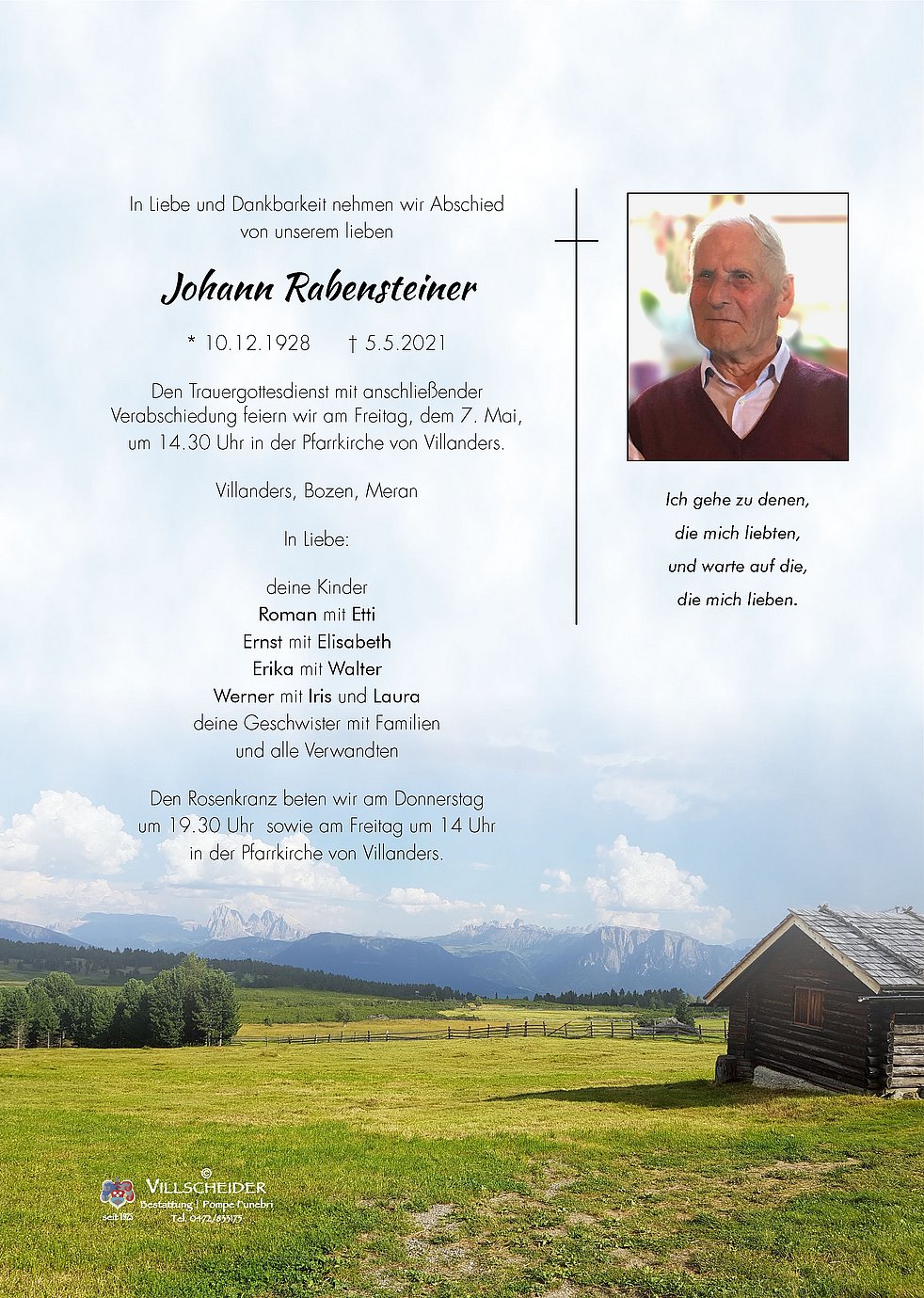 Wir sprechen euch allen unser tief empfundenes Beileid am Tod eures lieben Vaters aus. Auf dass euch die schönen Erinnerungen an ihn trösten und durch diese schwere Zeit der Trauer leiten.