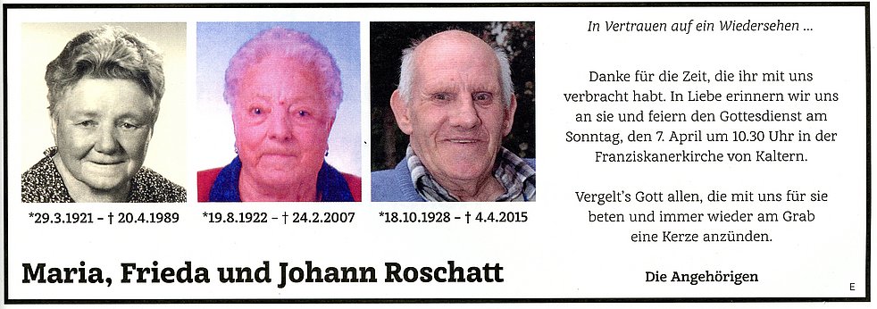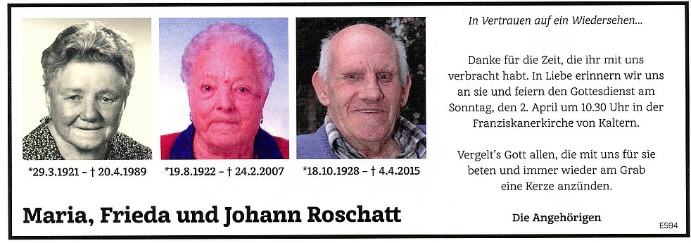 Allen, die an den Rosenkränzen und an der Beerdigung teilnehmen, im Voraus ein herzliches Vergelt´s Gott.