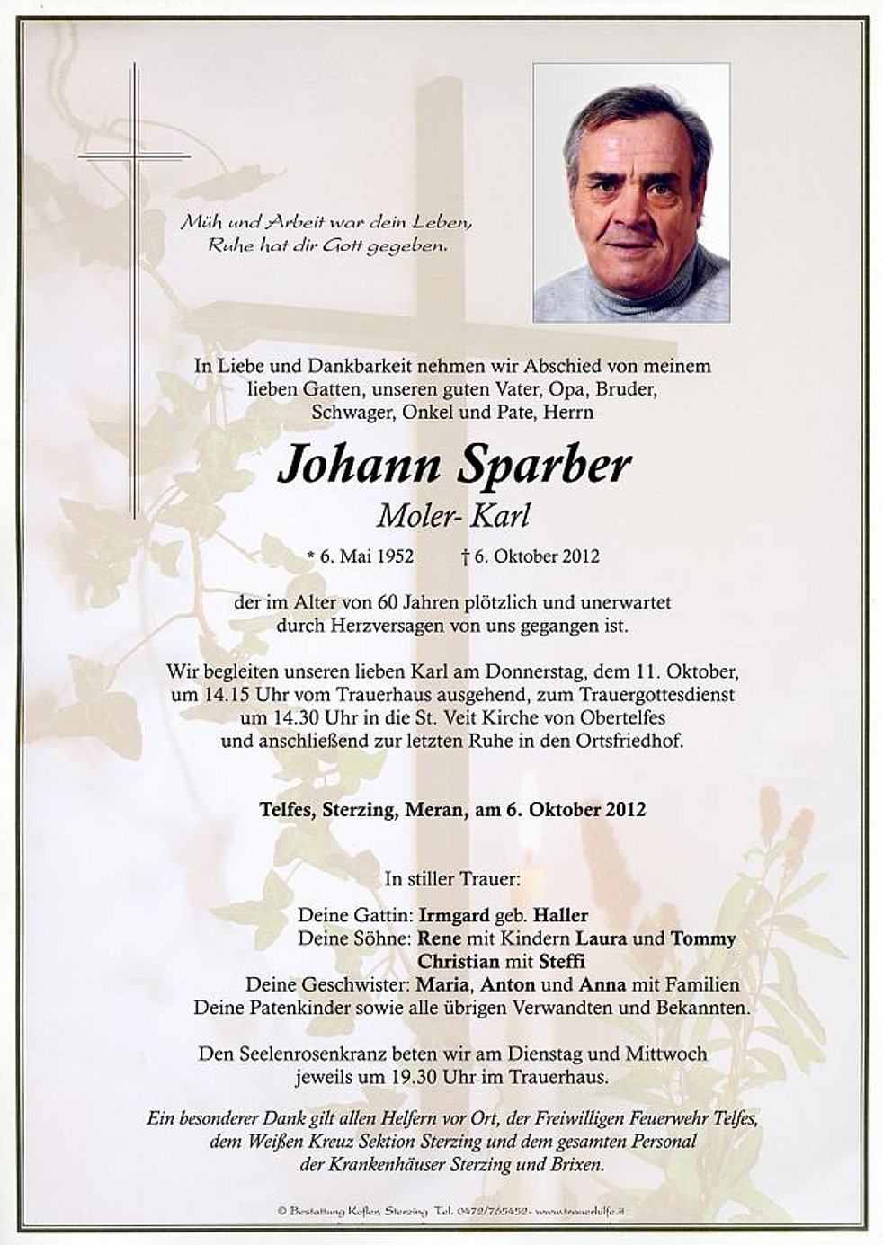 Wir begleiten unseren lieben Karl am Donnerstag, dem 11. Oktober, um 14.15 Uhr vom Trauerhaus ausgehend, zum Trauergottesdienst um 14.30 Uhr in die St. Veit Kirche von Obertelfes und anschließend zur letzten Ruhe in den Ortsfriedhof.