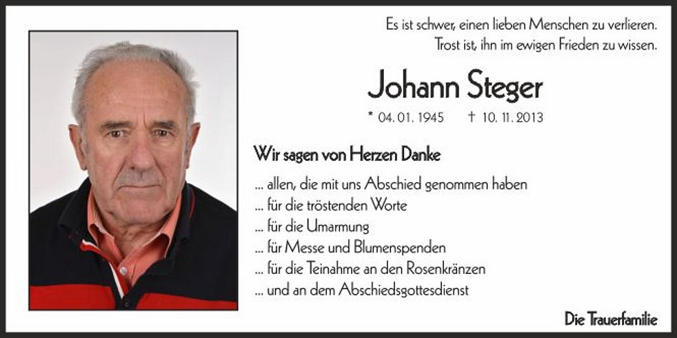 der nach einem Leben voll Fürsorge für seine Familie im 69. Lebensjahr infolge einer Gehirnblutung aus unserer Mitte gerissen wurde.
