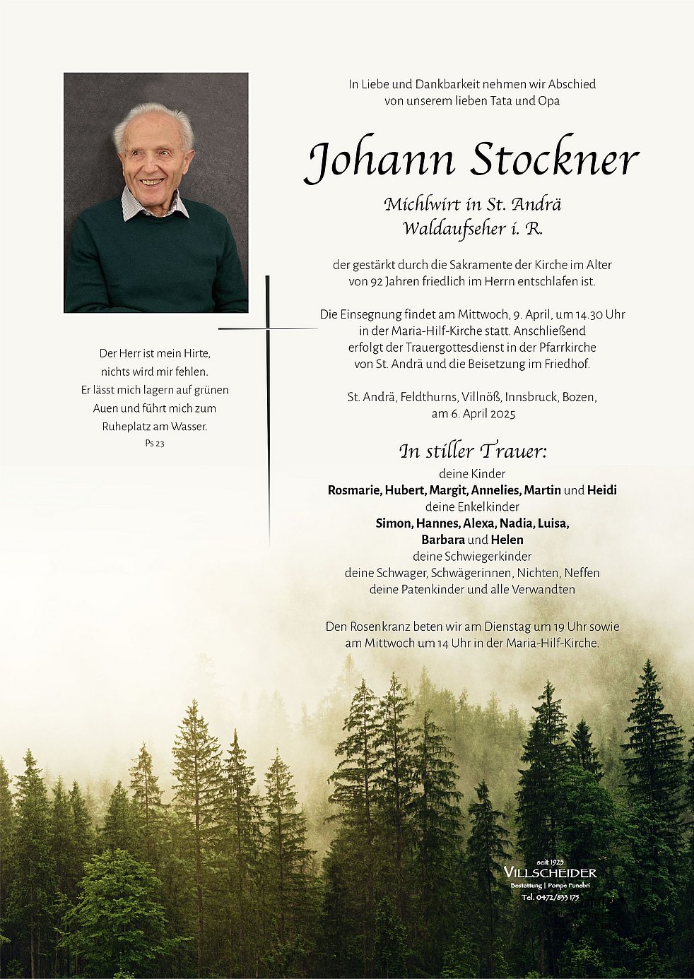 Begräbnisgottesdienst: 09.04. - 14:30 Uhr St. Andrä
