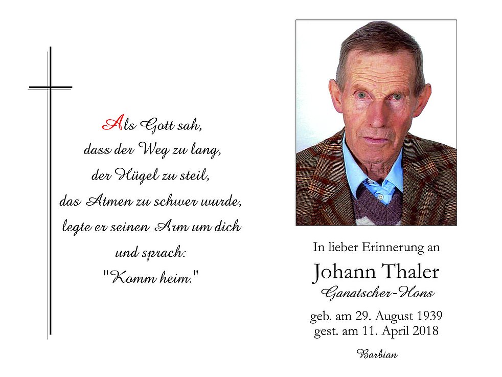 in die Pfarrkirche von Barbian zum Trauergottesdienst und anschließend auf dem Ortsfriedhof zur Verabschiedung.