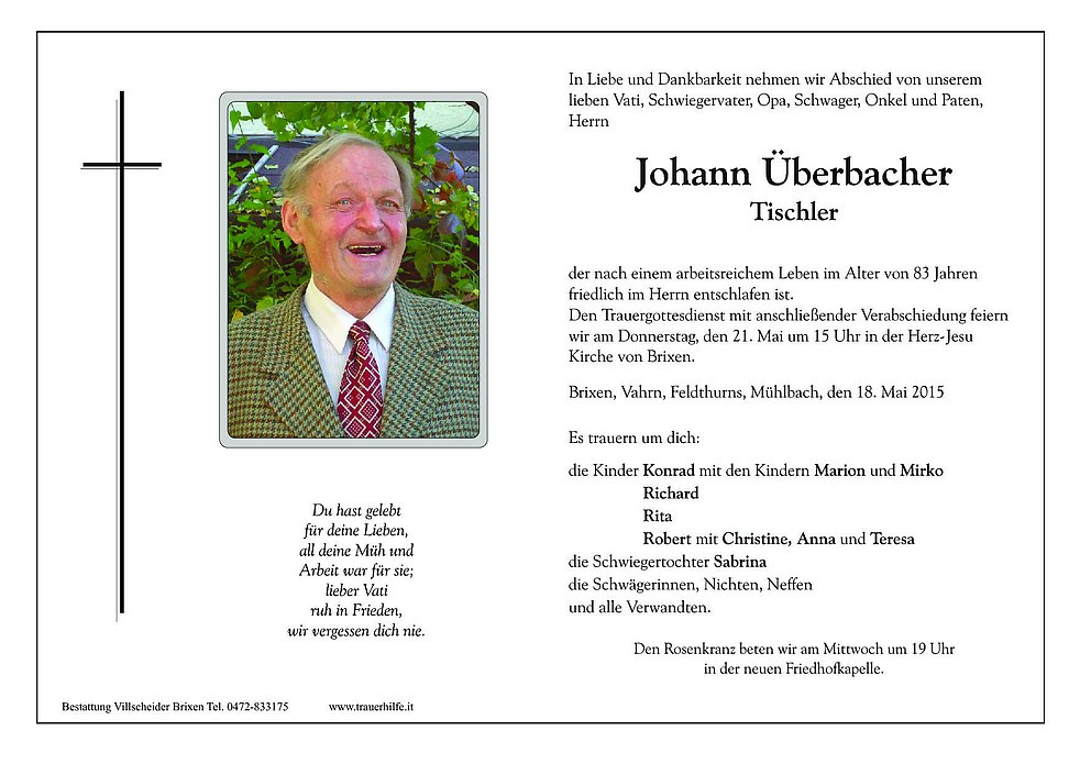 der nach einem arbeitsreichem Leben im Alter von 83 Jahren friedlich im Herrn entschlafen ist.