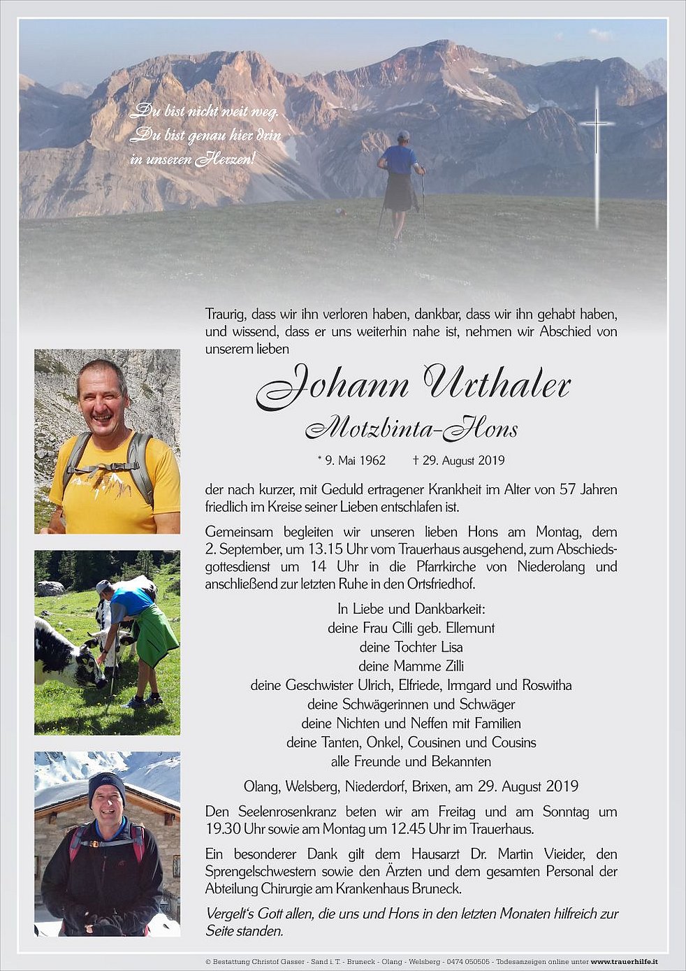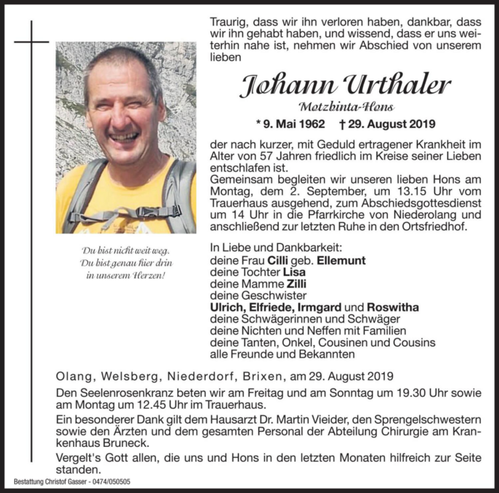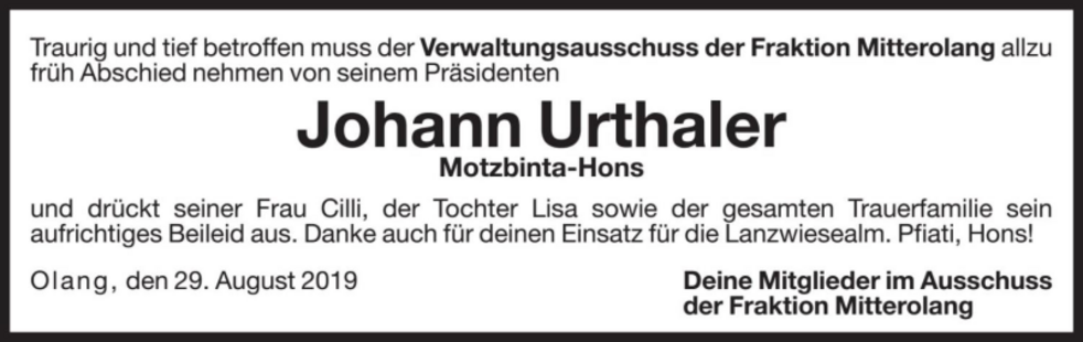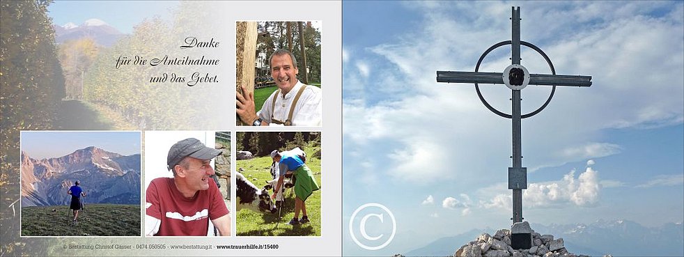 Ein besonderer Dank gilt dem Hausarzt Dr. Martin Vieider, den Sprengelschwestern sowie den Ärzten und dem gesamten Personal der Abteilung Chirurgie am Krankenhaus Bruneck.