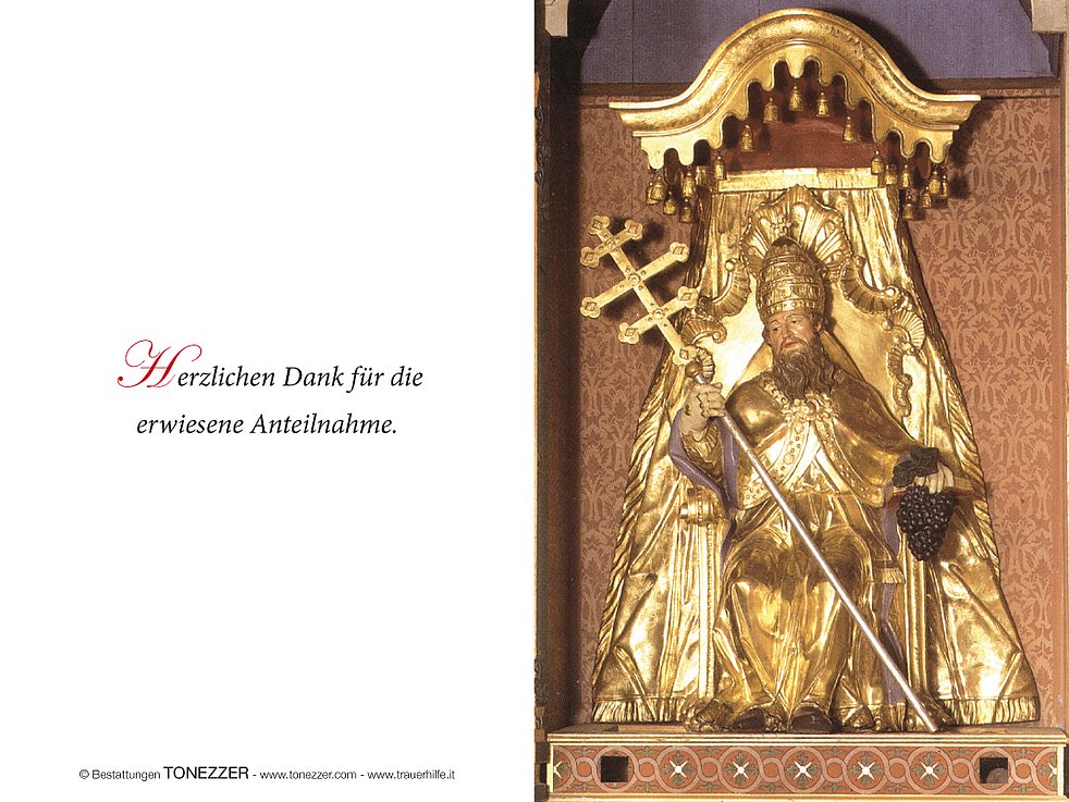 Ein besonderer Dank gilt unserem Hausarzt Dr. Erich Donà und dem gesamten Personal der Abteilung Medizin 3 des Krankenhauses von Schlanders für die liebevolle und fürsorgliche Betreuung.