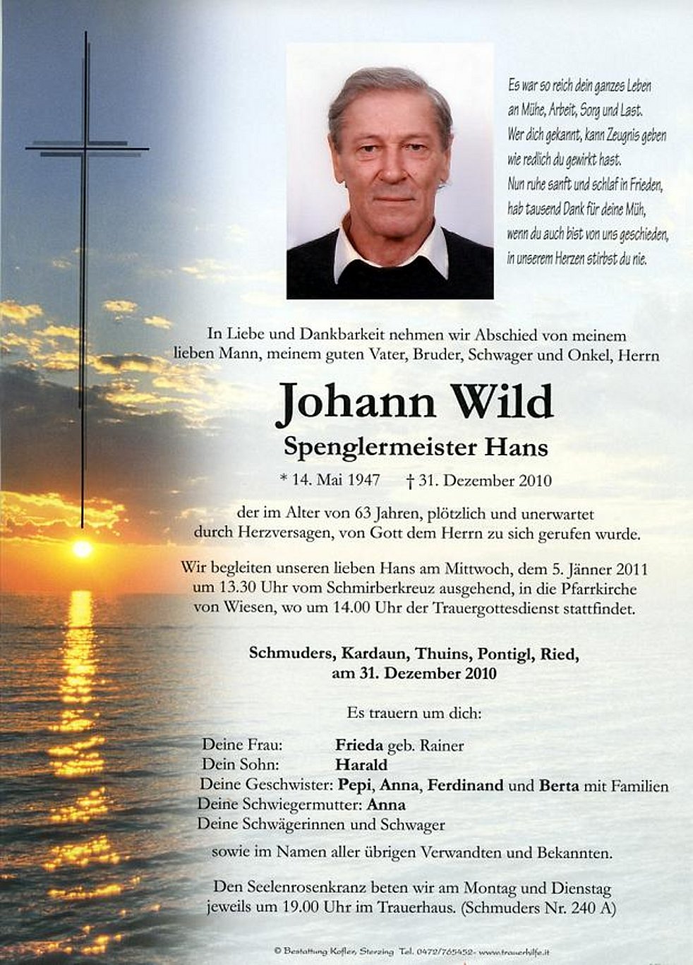Wir begleiten unseren lieben Hans am Mittwoch, dem 5. Jänner 2011 um 13.30 Uhr