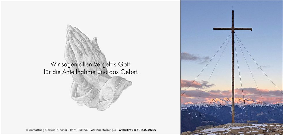 Vergelt’s Gott allen, die an den Seelenrosenkränzen und an der Trauerfeier teilnehmen.
