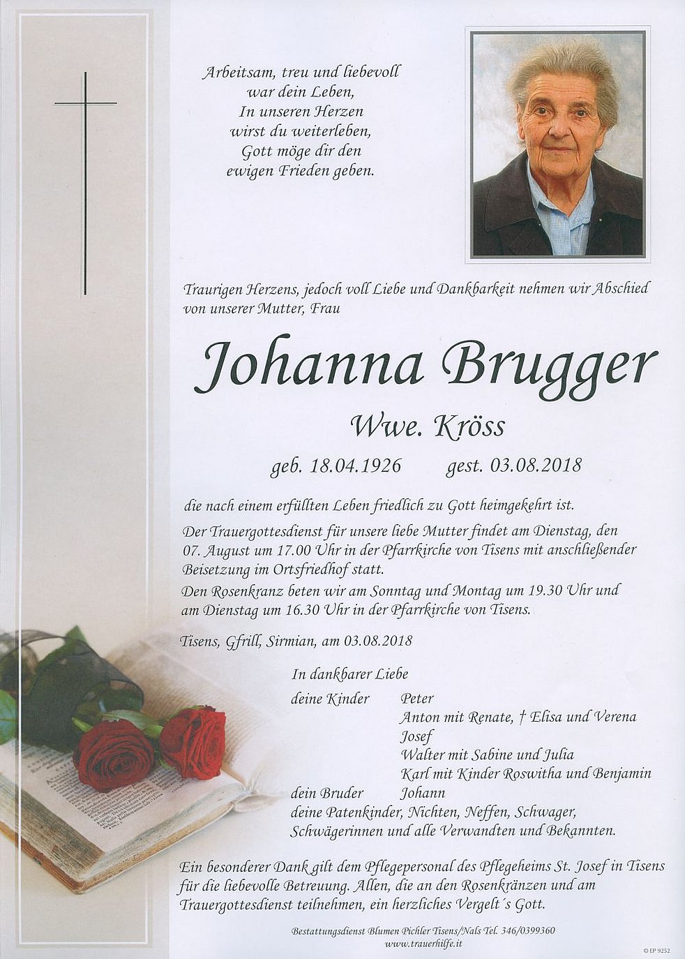 Der Trauergottesdienst für unsere liebe Mutter findet am Dienstag, den