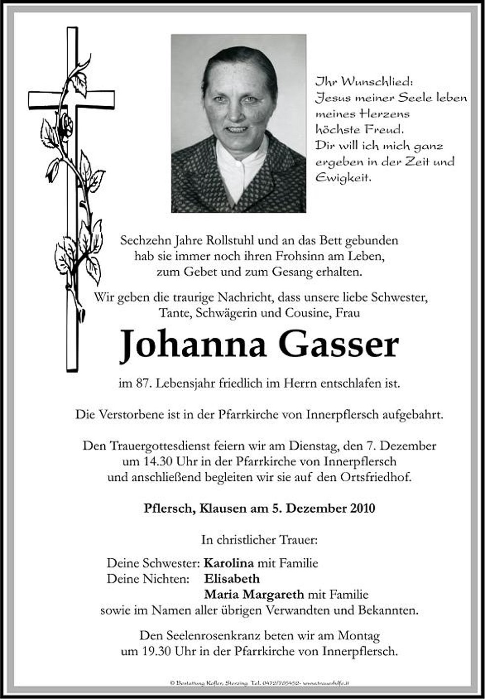 Den Trauergottesdienst feiern wir am Dienstag, den 7. Dezember um 14.30 Uhr in der Pfarrkirche von Innerpflersch und anschließend begleiten wir sie auf den Ortsfriedhof.
