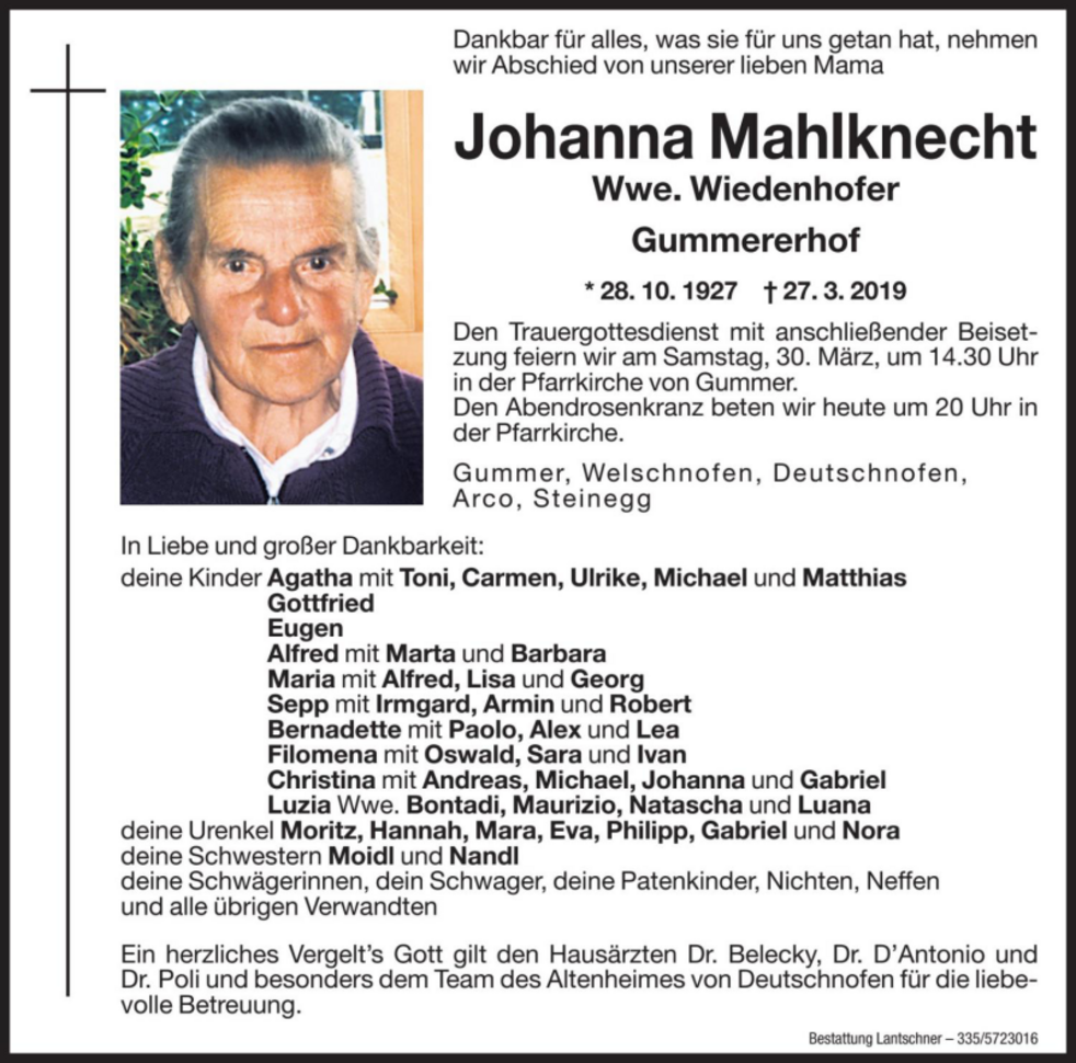 am Samstag, 30. März, um 14.30 Uhr in der Pfarrkirche von Gummer.