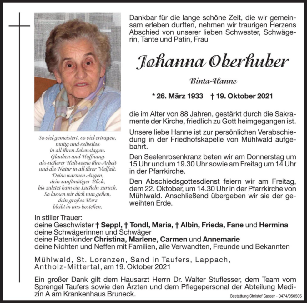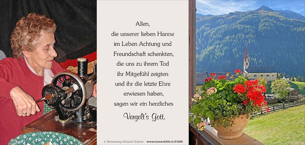 Unsere liebe Hanne ist zur persönlichen Verabschiedung ab Mittwochnachmittag in der Friedhofskapelle von Mühlwald aufgebahrt.