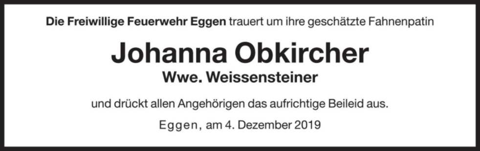 am Freitag, 6. Dezember, um 14.30 Uhr in der Pfarrkirche von Eggen.