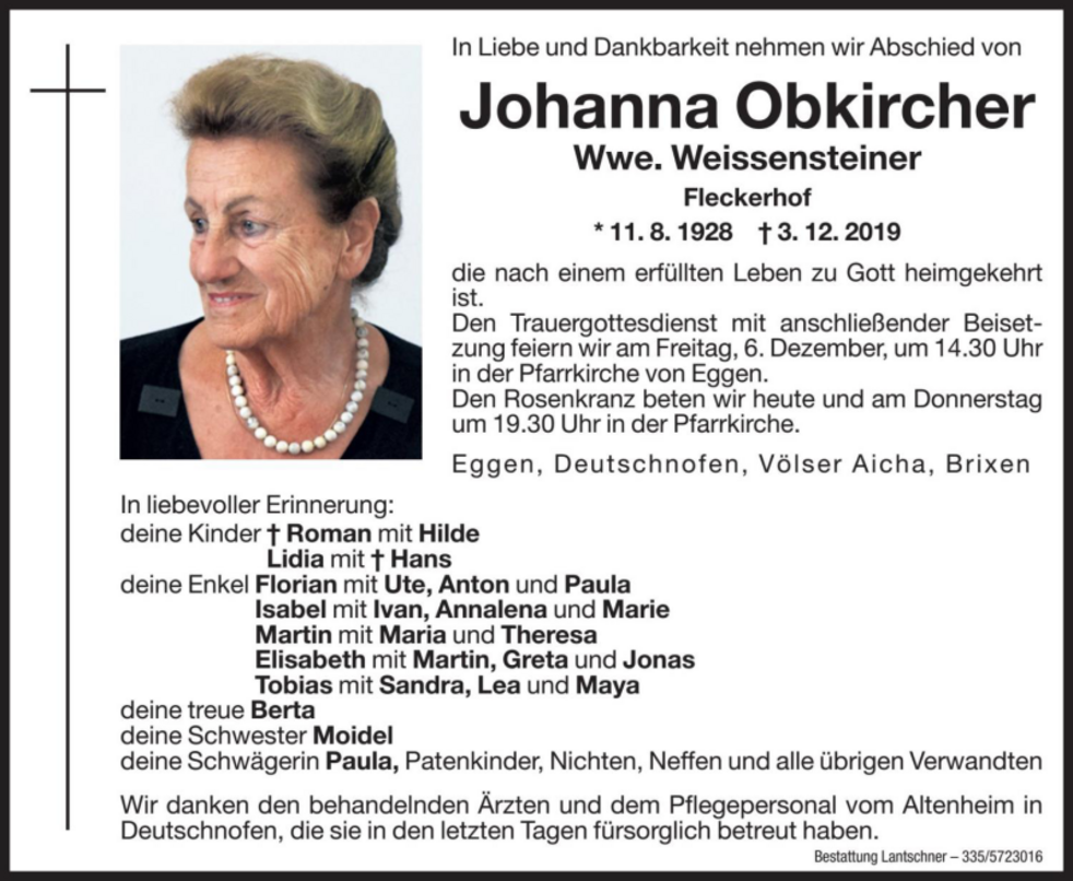 die nach einem erfüllten Leben zu Gott heimgekehrt ist.