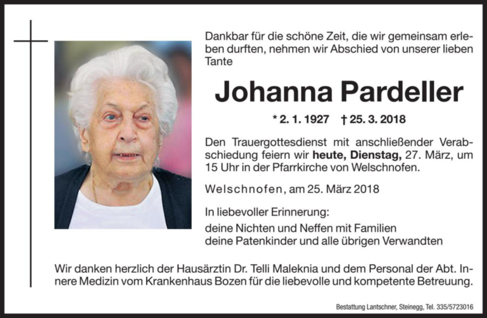am Dienstag, 27. März, um 15 Uhr in der Pfarrkirche von Welschnofen.