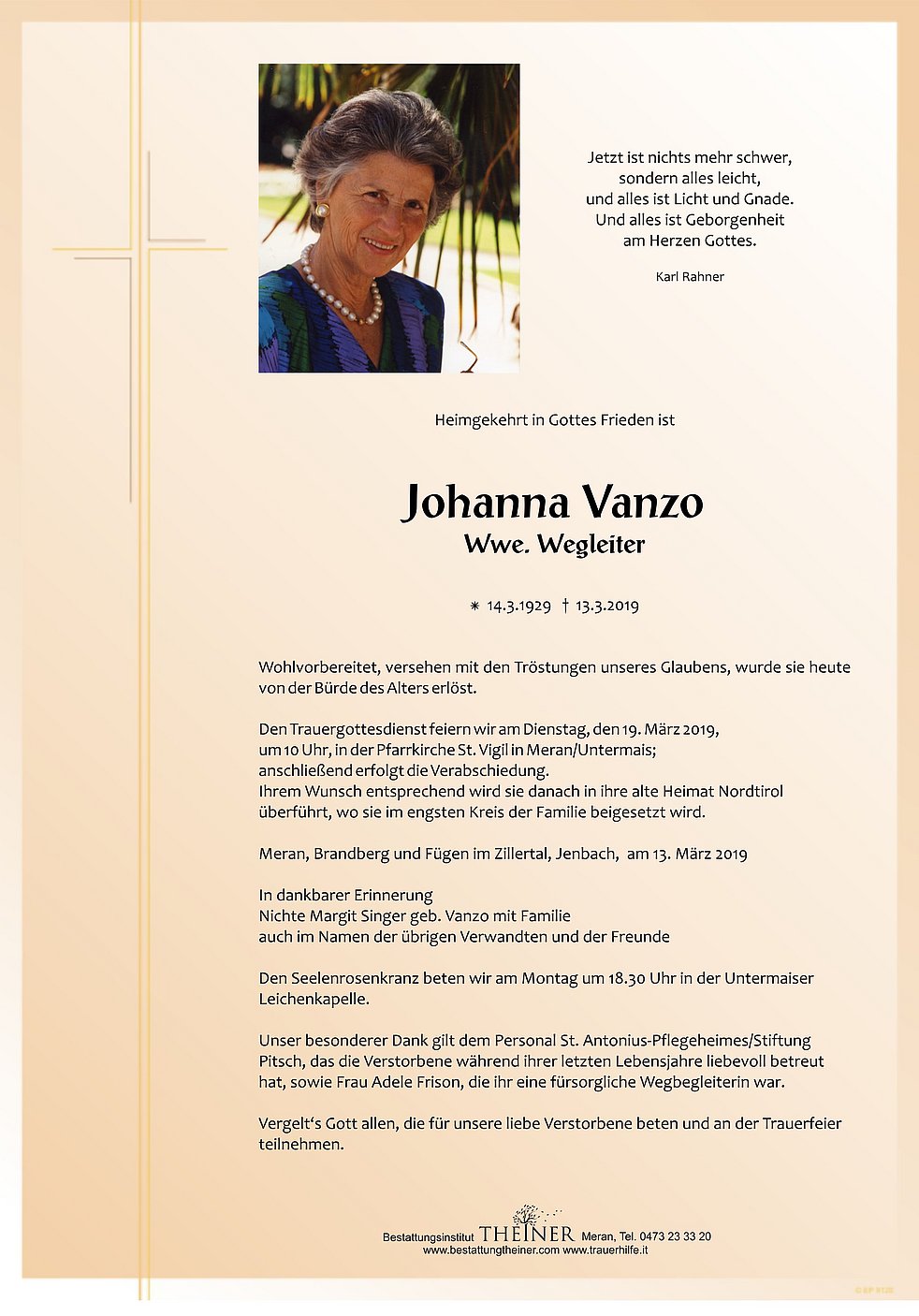 Unser besonderer Dank gilt dem Personal St. Antonius-Pflegeheimes/Stiftung Pitsch, das die Verstorbene während ihrer letzten Lebensjahre liebevoll betreut hat, sowie Frau Adele Frison, die ihr eine fürsorgliche Wegbegleiterin war.