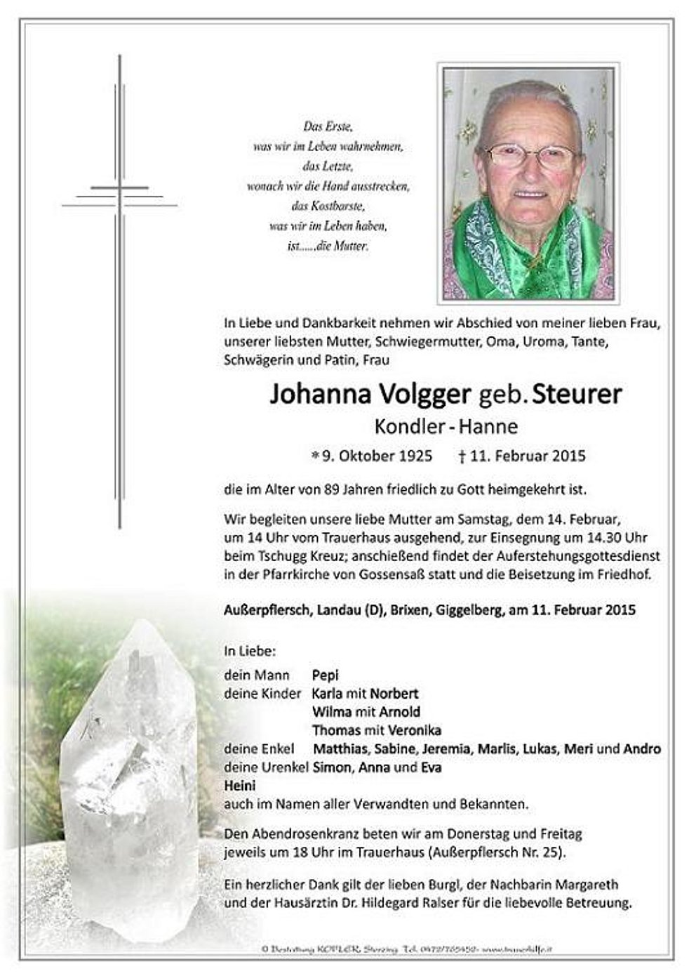 Johanna Volgger geb. Steurer