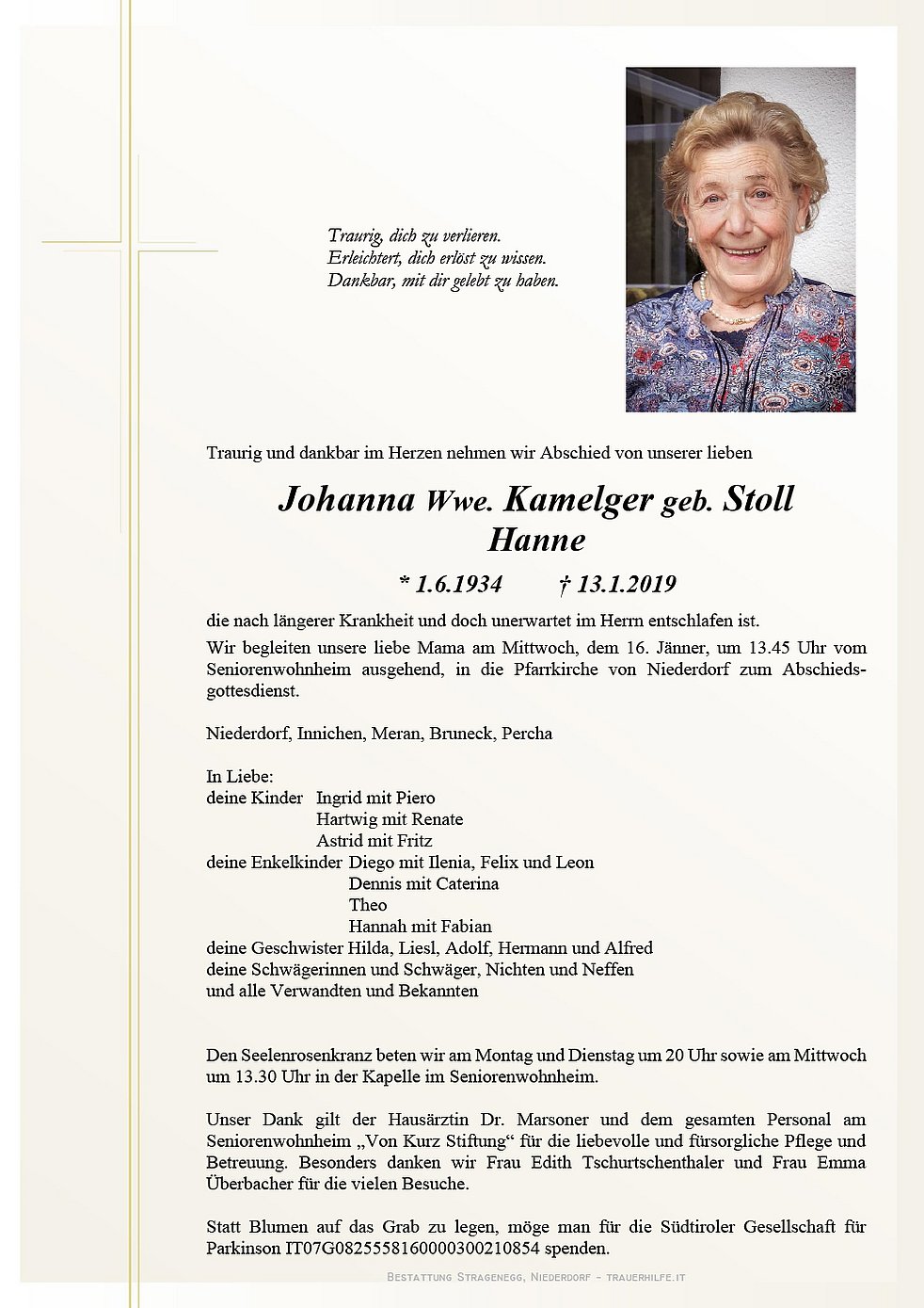 Wir begleiten unsere liebe Mama am Mittwoch, dem 16. Jänner, um 13.45 Uhr vom Seniorenwohnheim ausgehend, in die Pfarrkirche von Niederdorf zum Abschiedsgottesdienst.
