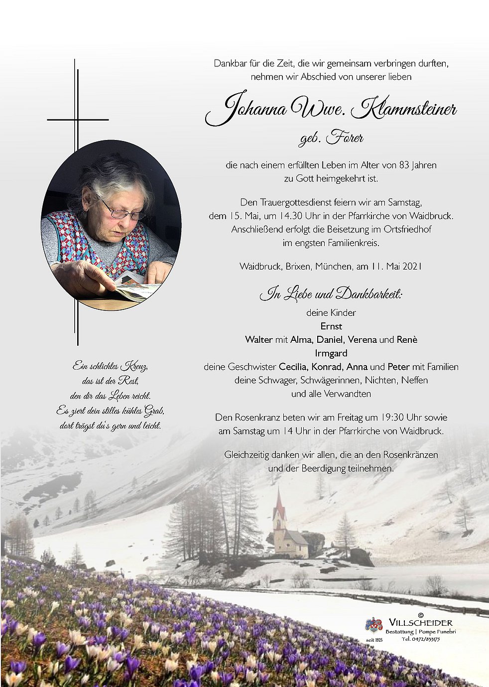 Wir trauern mit dir liebe Irmgard und mit deinen Geschwistern,