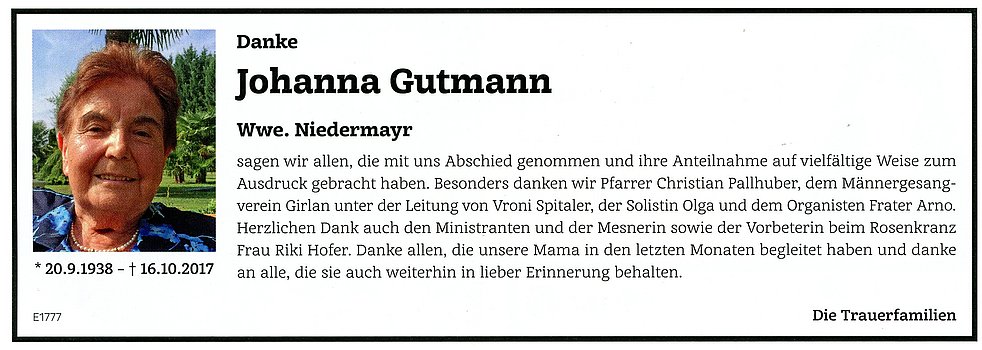 Allen, die am Rosenkranz und an der Beerdigung teilnehmen im Voraus ein herzliches Vergelt´s Gott.