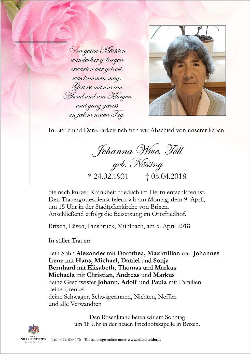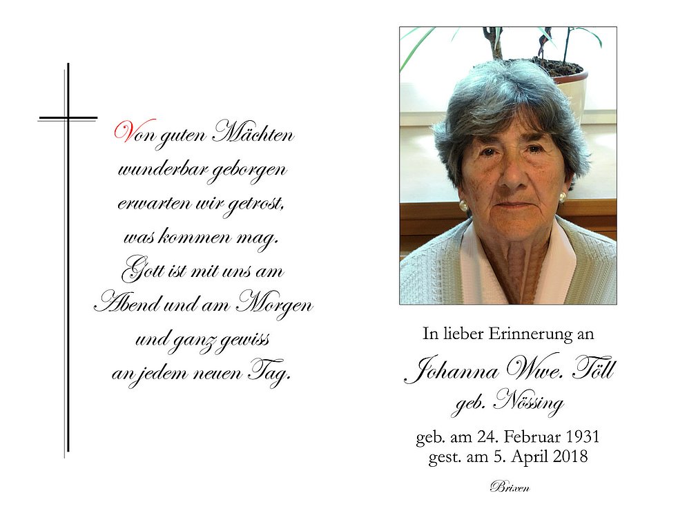 Den Trauergottesdienst feiern wir am Montag, dem 9. April,