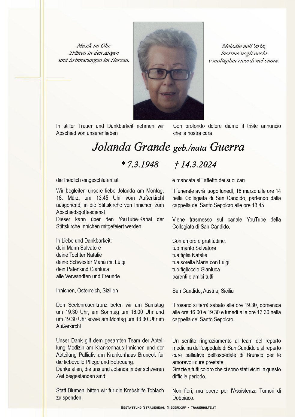 Liebe Maria mein aufrichtiges Beileid zum Tod deiner Schwester.