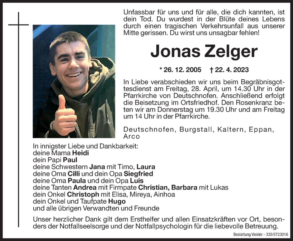 Unfassbar für uns und für alle, die dich kannten, ist dein Tod. Du wurdest in der Blüte deines Lebens durch einen tragischen Verkehrsunfall aus unserer Mitte gerissen.