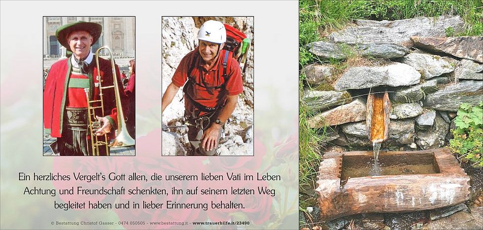 Ein besonderer Dank gilt den behandelnden Ärzten Herrn Dr. Christoph Leitner und Frau Dr. Monika Hilber sowie dem Pflegepersonal am Krankenhaus Bruneck.