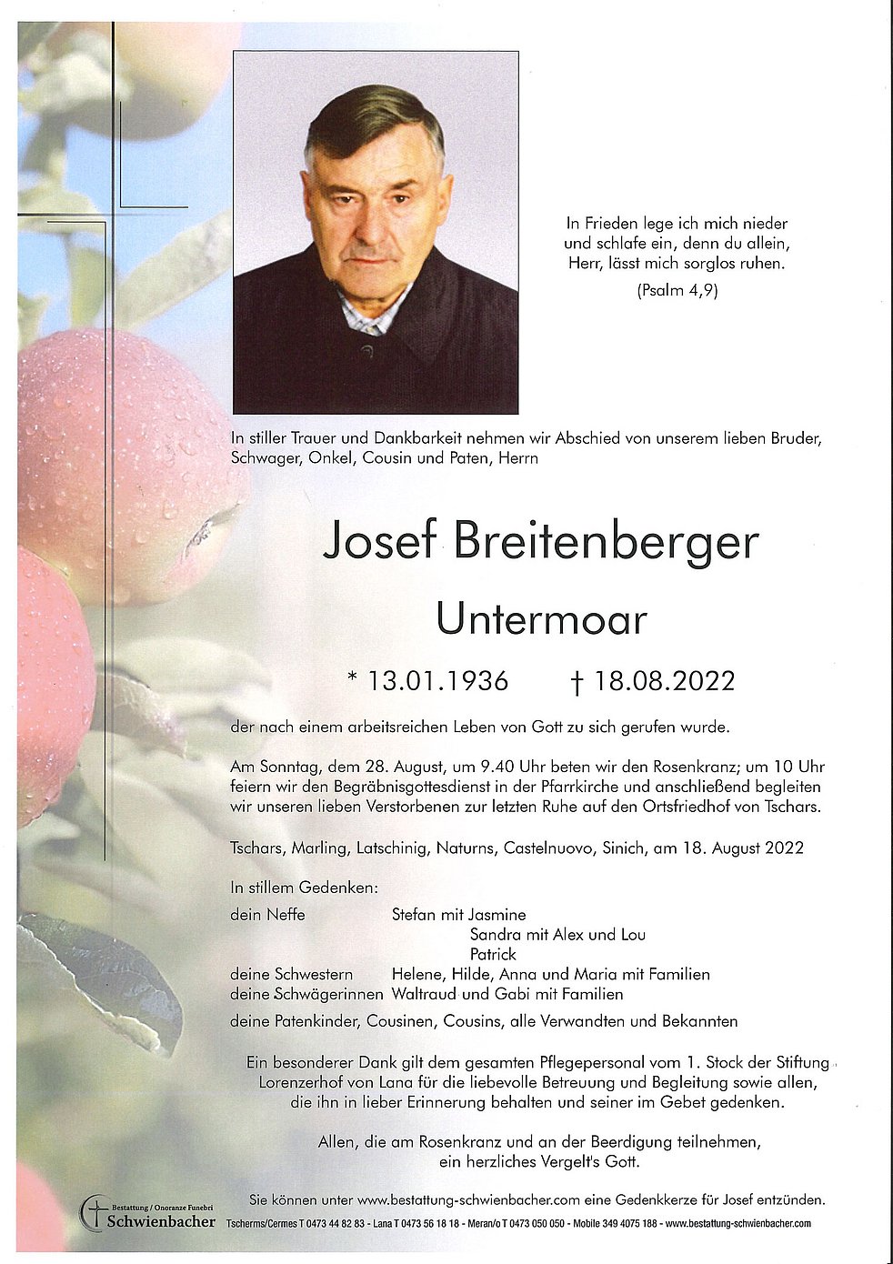 Trauerfeier: 28.08. - 10:00 Uhr Tschars