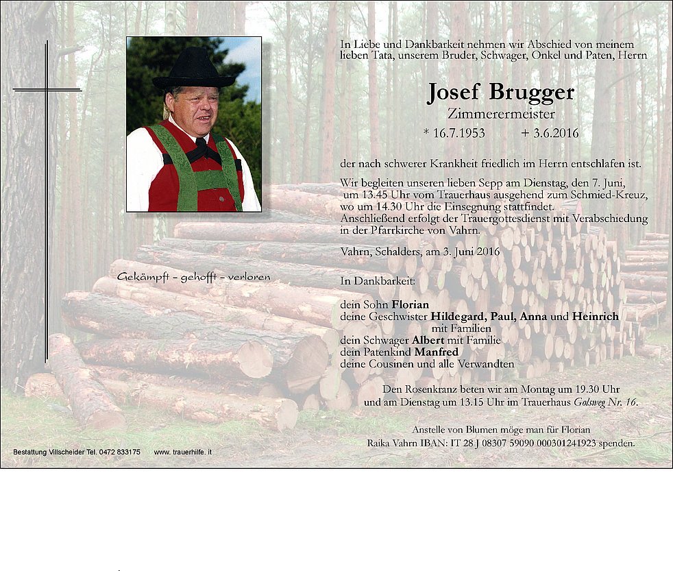 Wir begleiten unseren lieben Sepp am Dienstag, den 7. Juni,