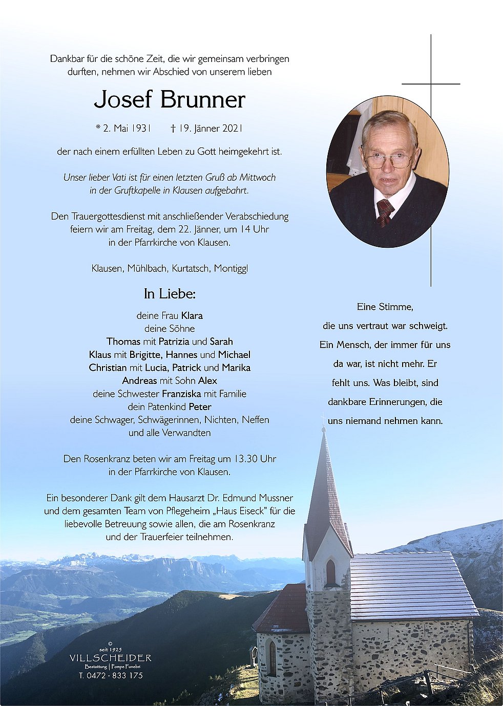 Frau Klara und den Söhnen mit Familien herzliche Anteilnahme und unser aufrichtiges Mitgefühl!