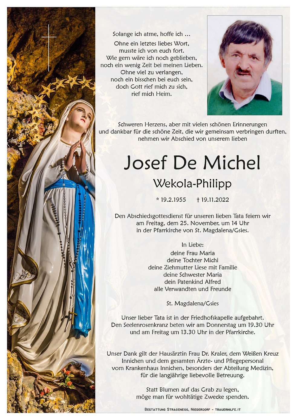Den Abschiedsgottesdienst für unseren lieben Tata feiern wir am Freitag, dem 25. November, um 14 Uhr in der Pfarrkirche von St. Magdalena/Gsies.