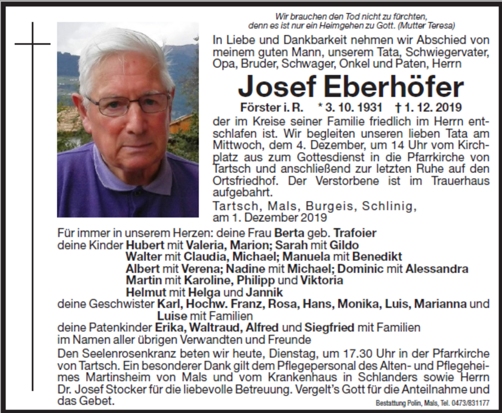 Vergelt’s Gott für die Anteilnahme und das Gebet.