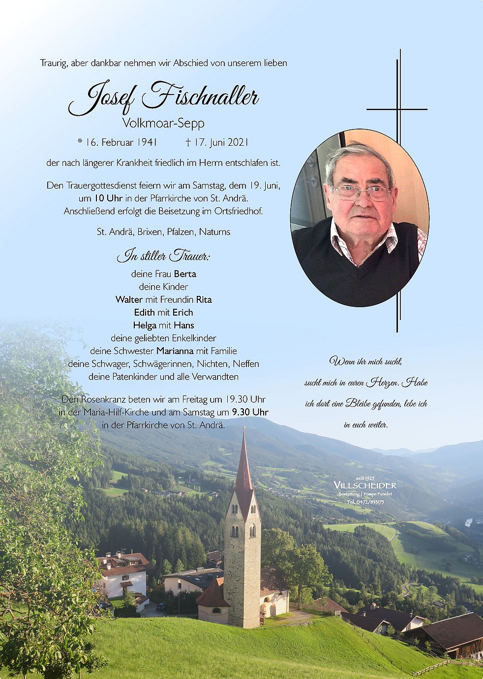 Begräbnisgottesdienst: 19.06. - 10:00 Uhr St. Andrä