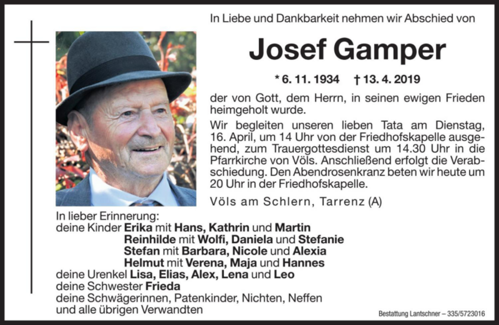 Wir begleiten unseren lieben Tata am Dienstag, 16. April um 14 Uhr