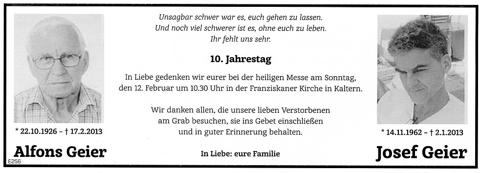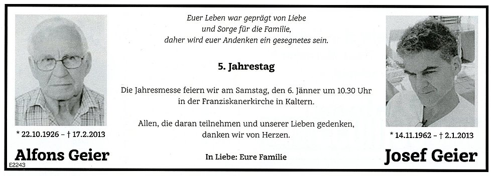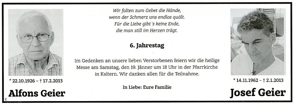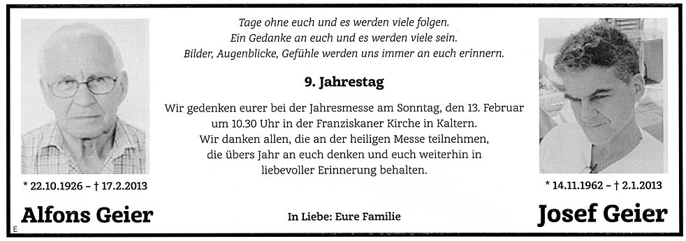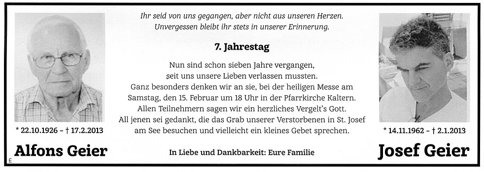 Allen, die am Rosenkranz und an der Beerdigung teilnehmen, im Voraus ein herzliches Vergelt´s Gott.