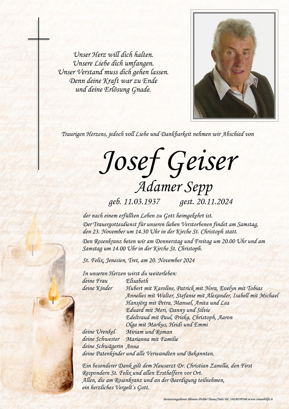 Begräbnisgottesdienst: 23.11. - 14:30 Uhr Kirche St. Christoph