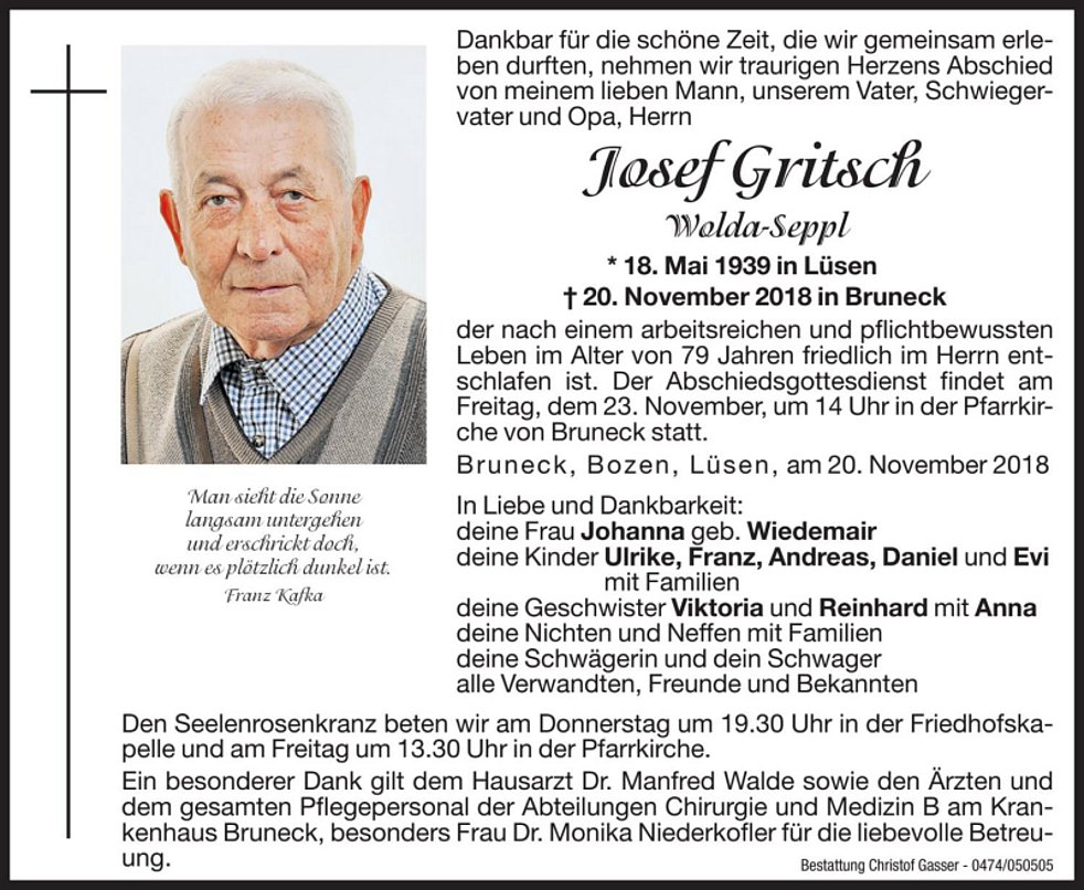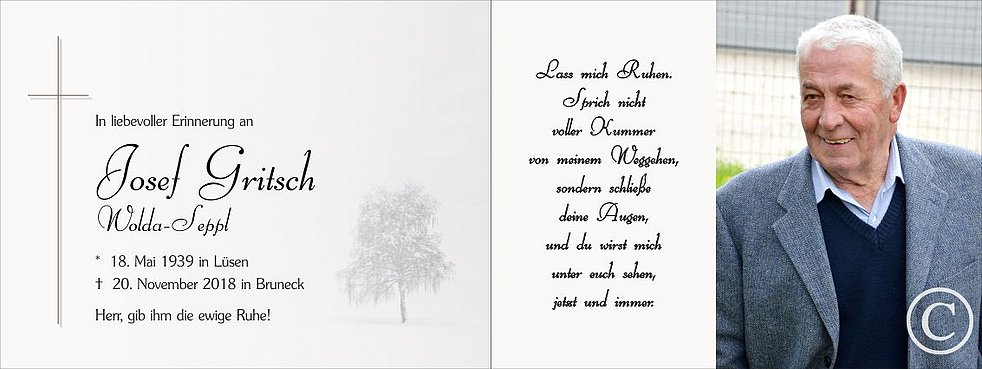 * 18. Mai 1939 in Lüsen † 20. November 2018 in Bruneck