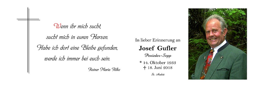 Wir bedanken uns bei Pater Johannes, dem Hausarzt Dr. Walter Niederstätter und den mobilen Krankenpflegerinnen für die fürsorgliche Betreuung und Begleitung.