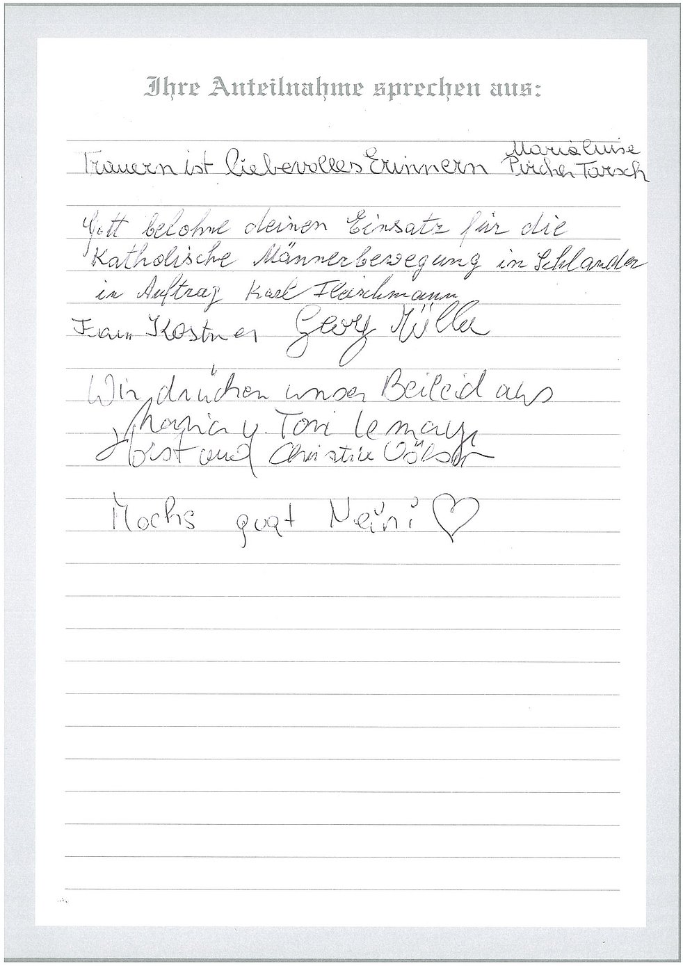Die Urnenbeisetzung findet zu einem späteren Zeitpunkt im engsten Familienkreis in Göflan statt.