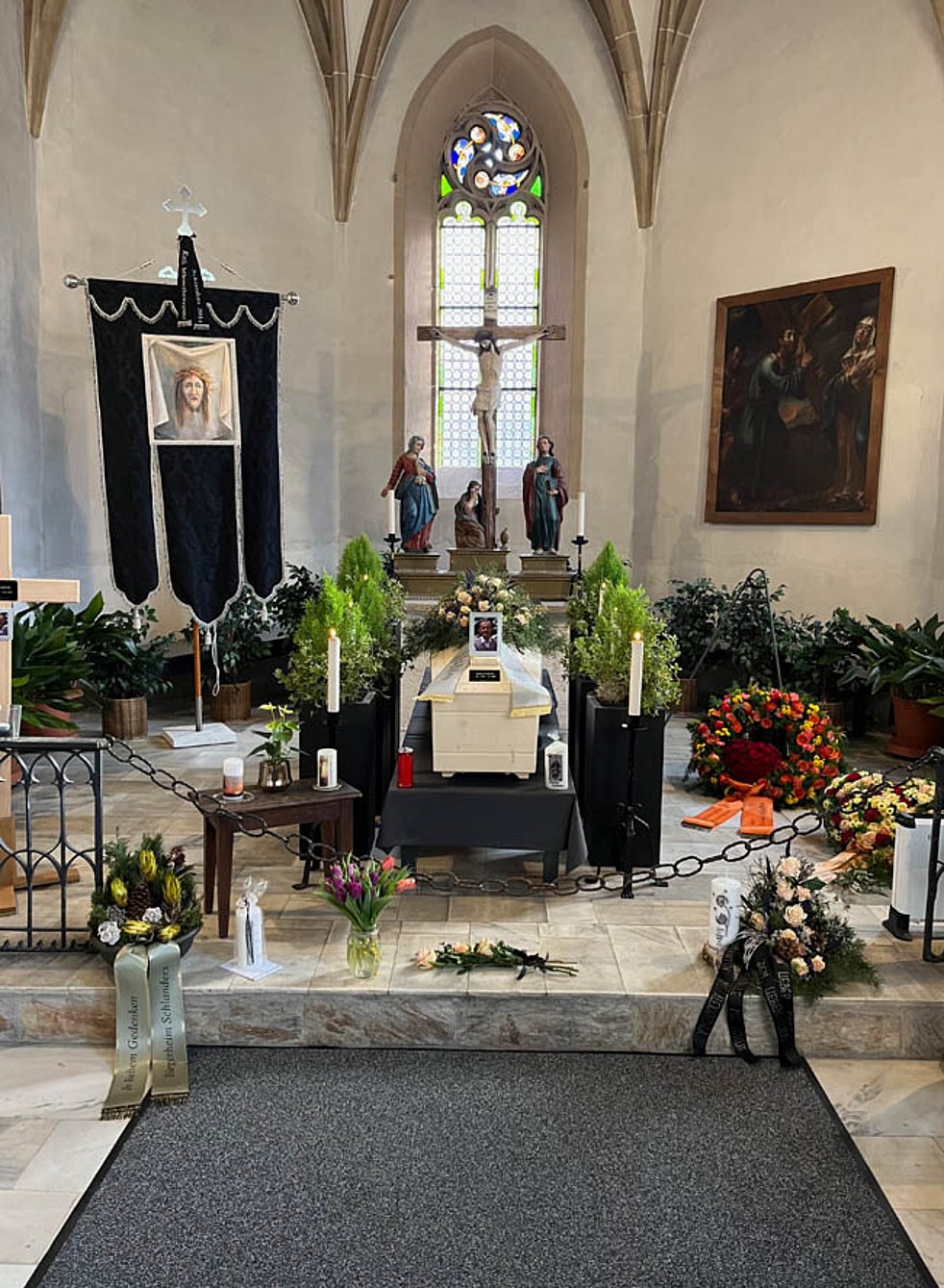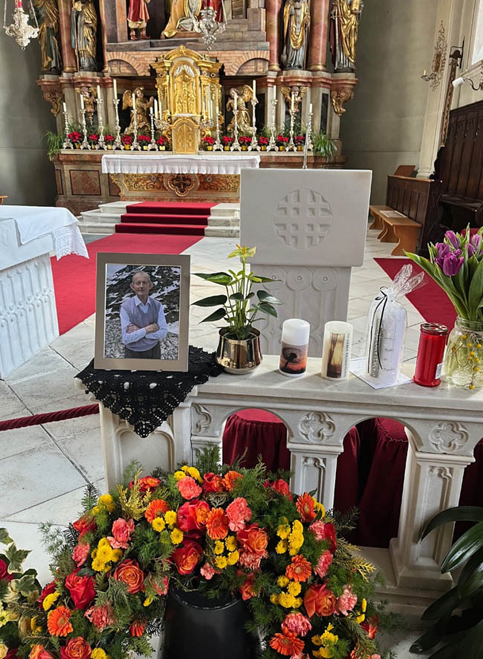 Am Donnerstag, 20. Jänner, um 13.30 Uhr beten wir den Rosenkranz; um 14 Uhr feiern wir den Begräbnisgottesdienst mit anschließender Verabschiedung in der Pfarrkirche von Schlanders.